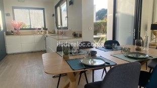 - Une cuisine, attenante à la salle à manger, entièrement équipée avec de nombreux placards