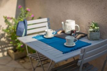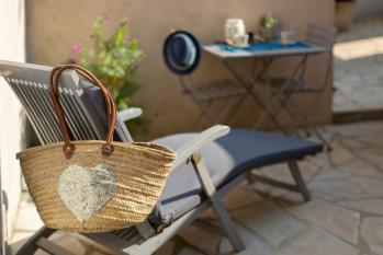 -Cour privative fleurie, accueillante et calme de 8m², pour accéder à toutes vos envies, table de jardin, chilienne et barbecue électrique sont à votre disposition.