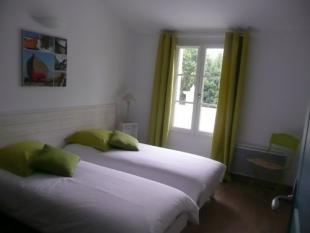 Au 1er étage, 2 chambres (une avec un grand lit 140x190, l'autre avec lits jumeaux 80x190), une salle d'eau (douche) et un WC indépendant.