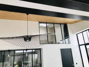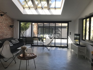 Maison rénovée esprit loft, très lumineuse, pleine de charme, volume et beaux matériaux (murs de pierres sèches, briques, verrière de toit, baies ateliers etc...)