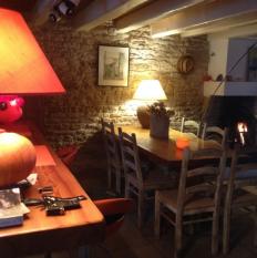 Maison de village très chaleureuse, beaucoup de charme avec les murs en pierres de la pièce de séjour.