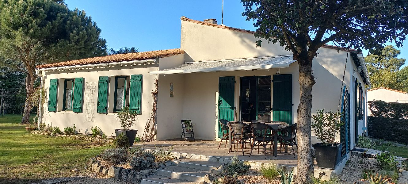 Maison plain pied de 6 personnes sur terrain clos de 1000 m2, arboré et ensoleillé, secteur calme, portail électrique, stationnement possible pour 3 voitures.