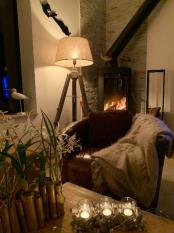 1 cuisine ouverte sur un grand salon (TV, DVD, WiFi)et son poêle à bois (sans les bûches) avec espace à salle à manger (grande table de 14 personnes)