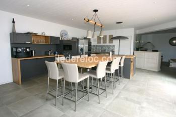 une cuisine équipée, ouverte sur le salon et donnant sur la piscine 8x4 chauffée et au sel.