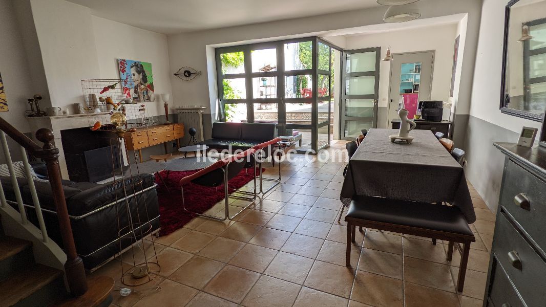 - 1 grand séjour avec cheminée, deux canapés et deux fauteuils.