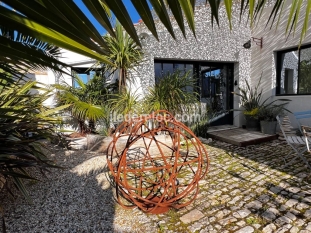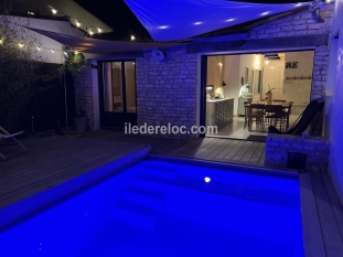 En plein coeur de Sainte-Marie-De-Ré, ancien Chai rénové pour 11 personnes, avec piscine chauffée d'avril à fin octobre, équipée d'une terrasse coulissante sécurisée et de la nage à contre-courant.