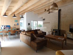 Maison très lumineuse comprenant : Une grande pièce à vivre d'env. 60 m2 avec 3 espaces : salon, salle à manger et cuisine aménagée entièrement équipée, 3 chambres avec lit double 160x190 dont une est équipée d'une salle d'eau privative, et toutes ont un grand dressing, 1 chambre dite "Le dortoir" comprenant 5 lits de 90x190 dont 2 en mezzanine sécurisée, ces lits peuvent être rapprochés pour former un couchage 2 places, salle d'eau privative avec WC.