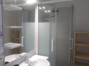 Salle d'eau avec sèche serviettes chauffant et lave linge
