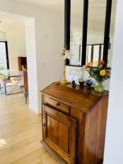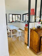 C'est une maison agréable à vivre, très lumineuse et calme. Elle est posée au milieu du jardin, très présent donc dans toutes les pièces de la maison.