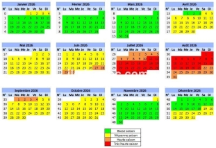 - 5 nuits : 90% du prix de la semaine hors ménage