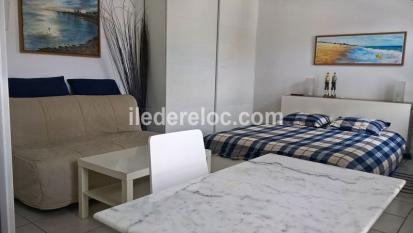 STUDIO: 2/3 personnes : kitchenette équipée - repas - Séjour - Canapé convertible 1/2 places. Salle d'eau douche italienne - WC. Lit 2 personnes en 160 cm.