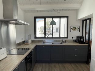 Belle maison de plein pied très lumineuse de 120 m2 idéalement située au calme entre plage (200m), commerces (400 m) et port de Saint Martin (10 minutes à pied).