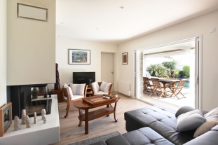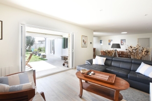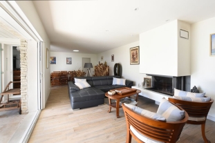 Le séjour en L est composé d'une cuisine ouverte sur l'espace. Le salon lumineux avec cheminée s'ouvre sur la pergola. Vous disposez d'une buanderie avec lave linge, sèche linge et congélateur, donnant accès à la rue.