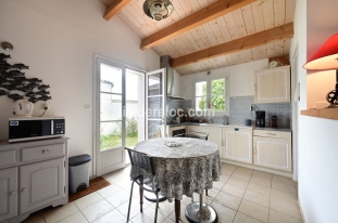 La Maison est de plain pied et vous offre une spacieuse pièce de vie avec sa magnifique ferme ouverte (poutres apparentes) offrant un volume et une lumière très agréable. La pièce possède un coin salon et repas puis une cuisine ouverte donnant sur une seconde petite terrasse que vous apprécierez selon les différents moments de la journée.