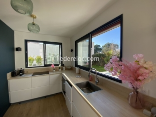 - Une cuisine, attenante à la salle à manger, entièrement équipée avec de nombreux placards