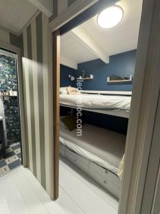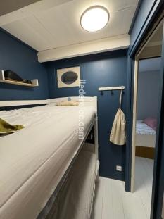 A l'étage: salle de douche Wc, une chambre plein sud avec un lit en 140 et armoire de rangement, une chambre cabine ave deux lits superposés