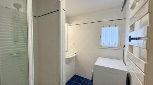 Douche, vasque, rangements, sèche-serviettes, lave-linge