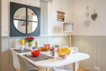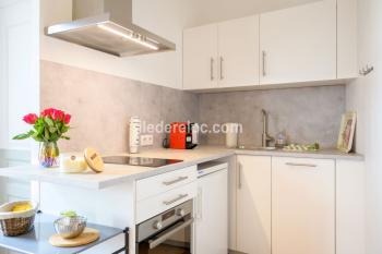 6 agréables 2 pièces avec 1 chambre chacun, un grand lit dans la chambre, un canapé lit dans le coin salon, cuisine ouverte entièrement équipée, four mix, hotte, plaques induction, lave-vaisselle, Nespresso, cafetière classique, grille pain, bouilloire, petit frigidaire, petits électroménager, lave linge...