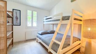 1 lit superposés ( 1 lit x 140 + 1 lit x 90), lampes, penderie, commode, étagères